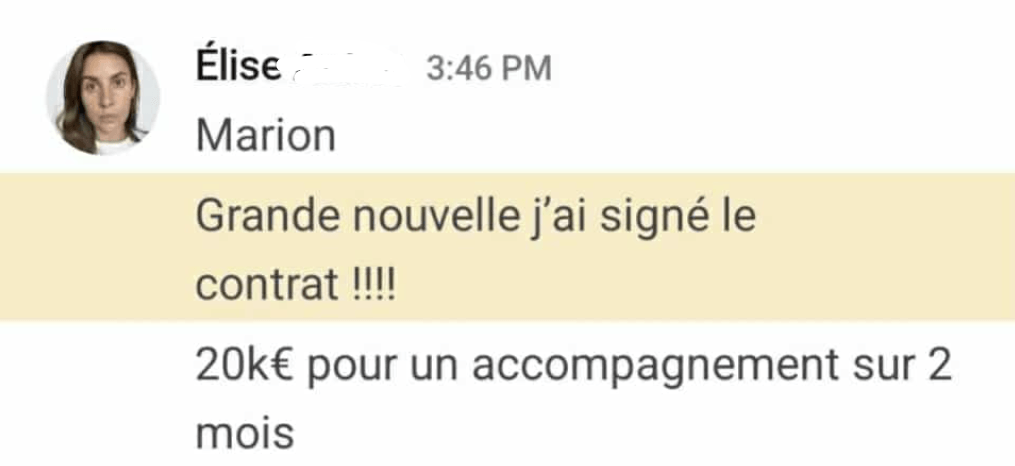 Aujourd'hui, j'ai une offre et une méthode claire et j'ai signé pour 20 000€ en quelques semaines ! "