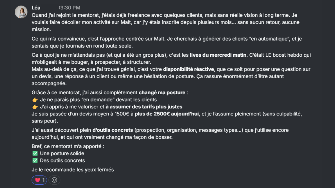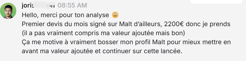 +20 k Pour Elise qui est Growth Marketer et qui n'arrivait pas à trouver de mission suite à la fin de son contrat.