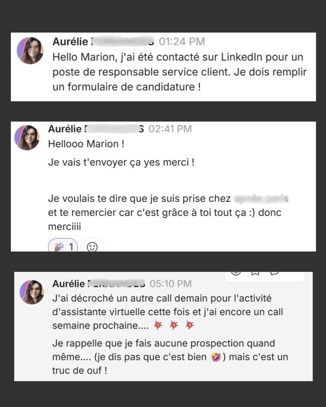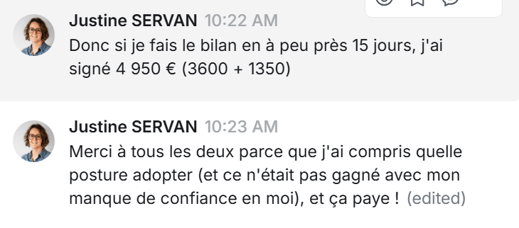 + 2 contrats signés pour Aurélie, customer care, en moins de 90 jours après s'être lancée (et alors qu'elle n'avait pas d'expérience)